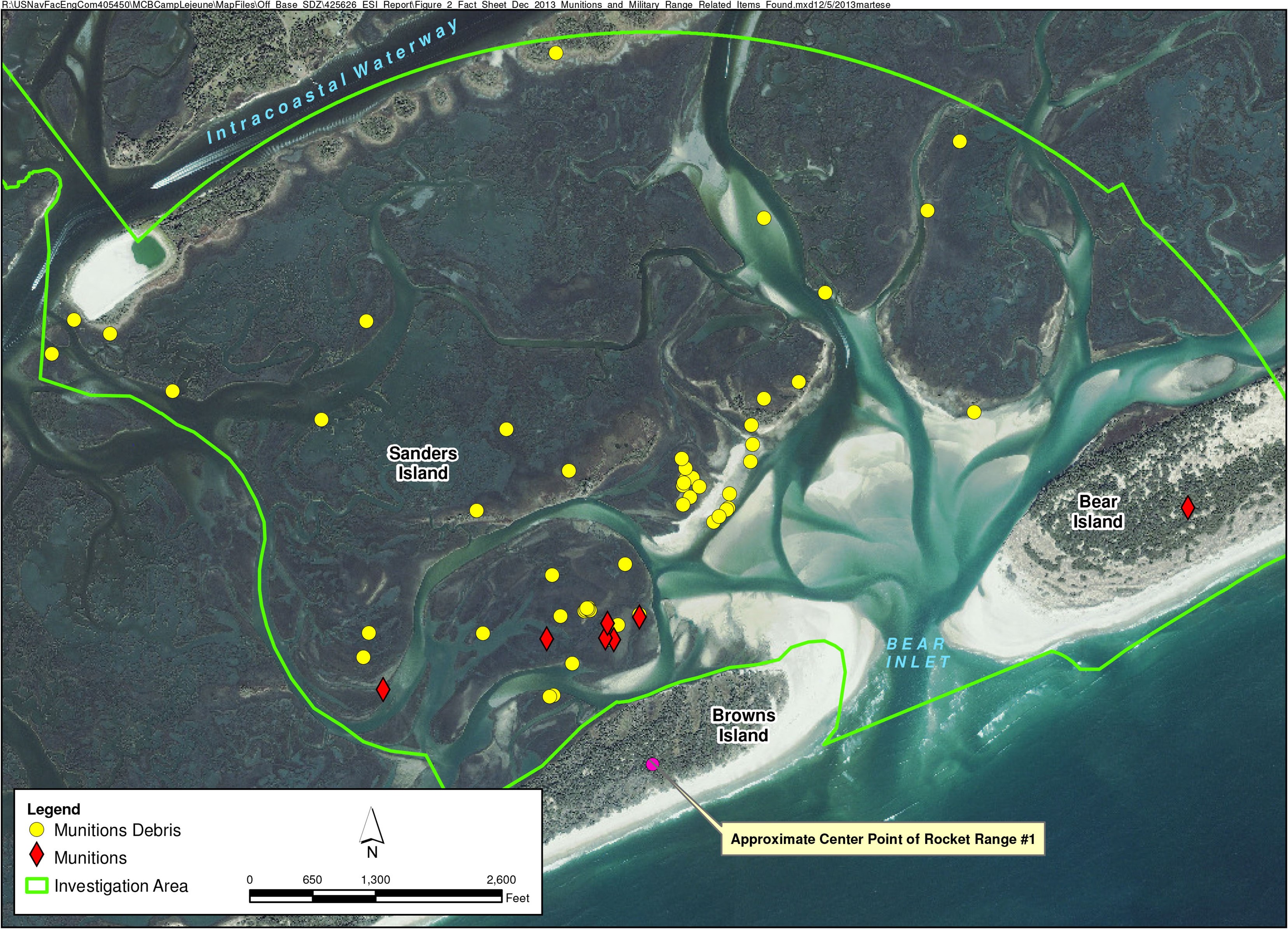 However, it is possible that munitions or munitions fragments might have inadvertently landed beyond the boundaries of the Base in the past. Although there has been no indication that a safety risk exists, Camp Lejeune has conducted an investigation to ensure the protection of human safety and health and of the environment.